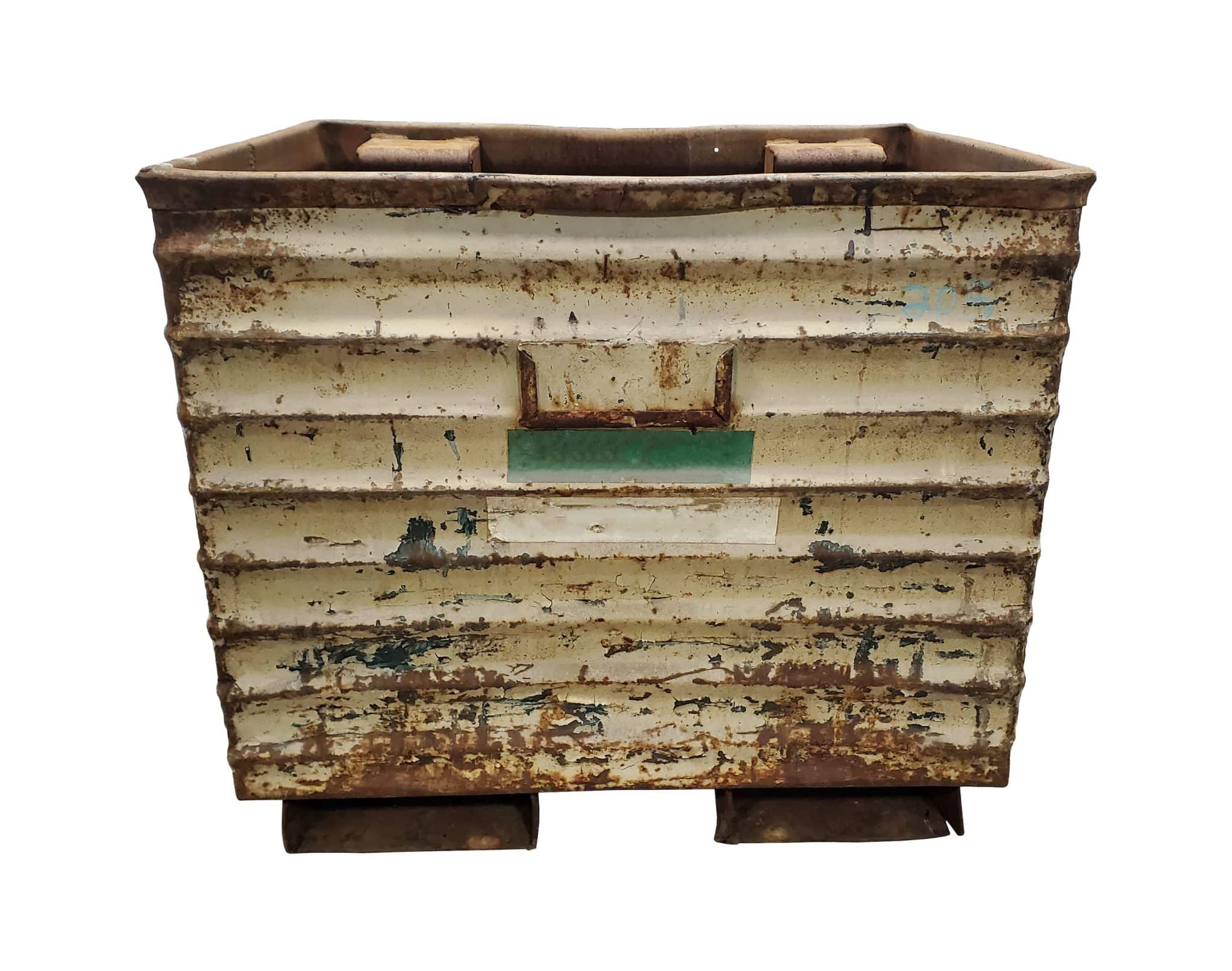 Item #2448: Steel Corrugated Bins 35″ x 27″ x 30″ OA ht, (26″ inside ht), Roll over ability). Qty: 56 units Price: Please call, plus freight quoted separately, subject to prior sales, payment required before shipping.