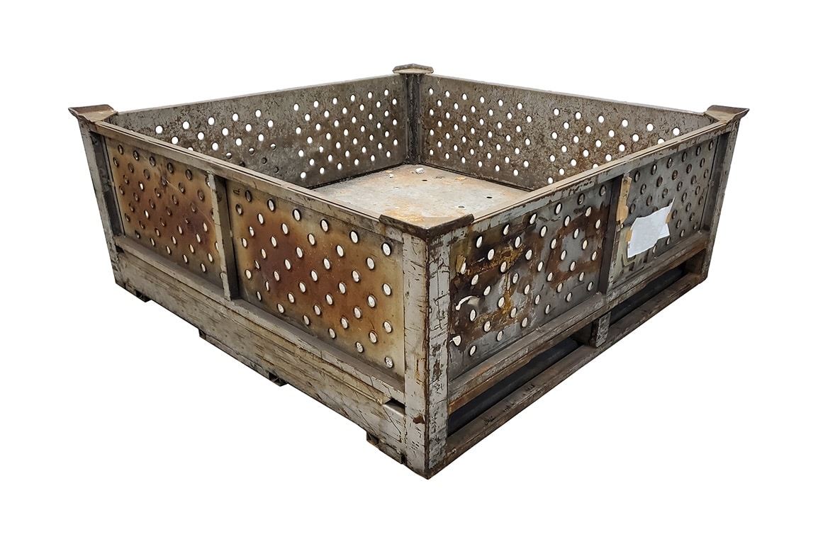 Item #2509: Steel Perforated Bins 44″ x 44″ x 18″ OA ht, (12″ inside ht), no gates.
