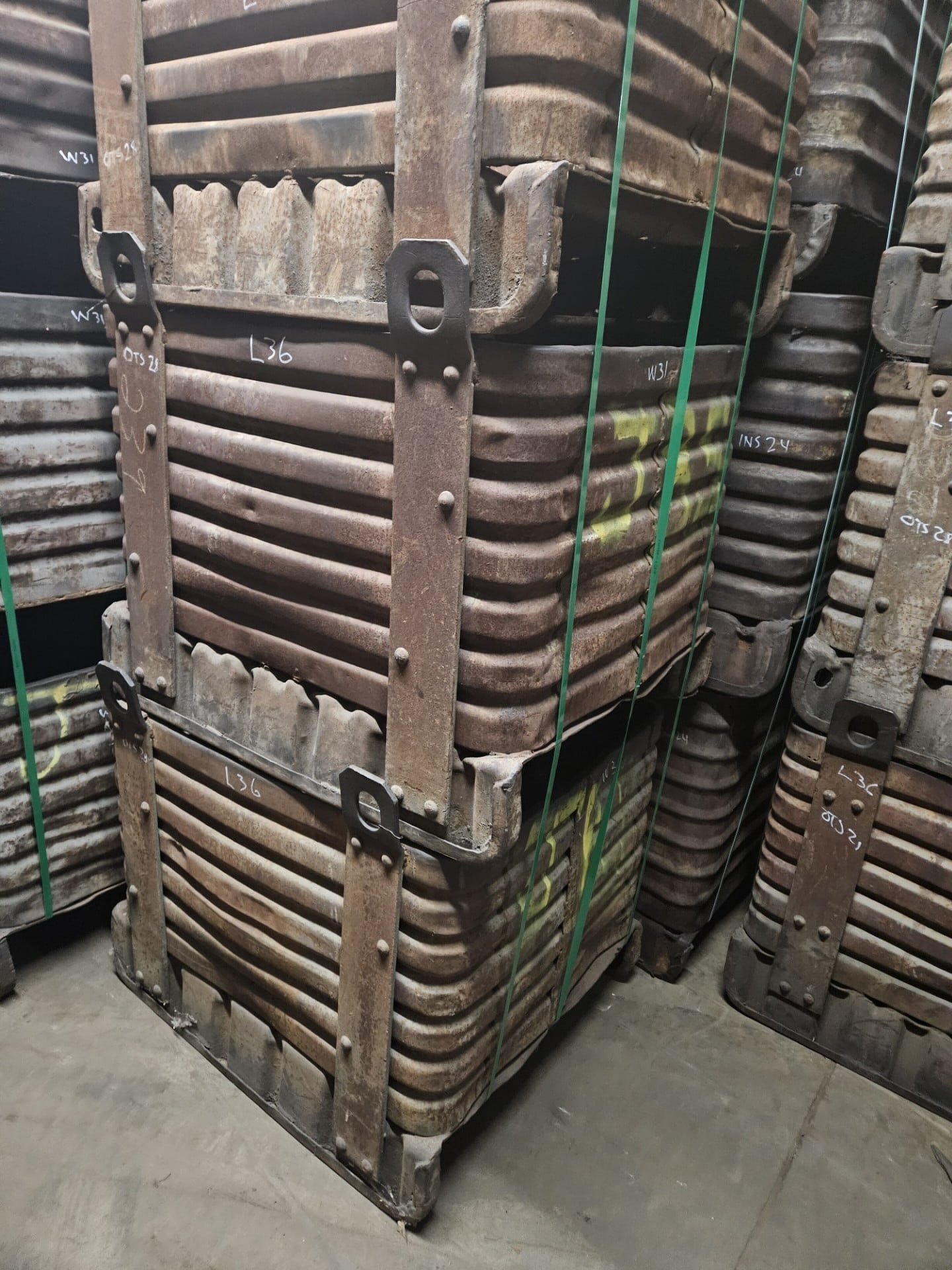 Item #2531: Steel Corrugated Bins 30″ x 36″ x 28″ OA ht, (21″ inside ht) lift Lugs.