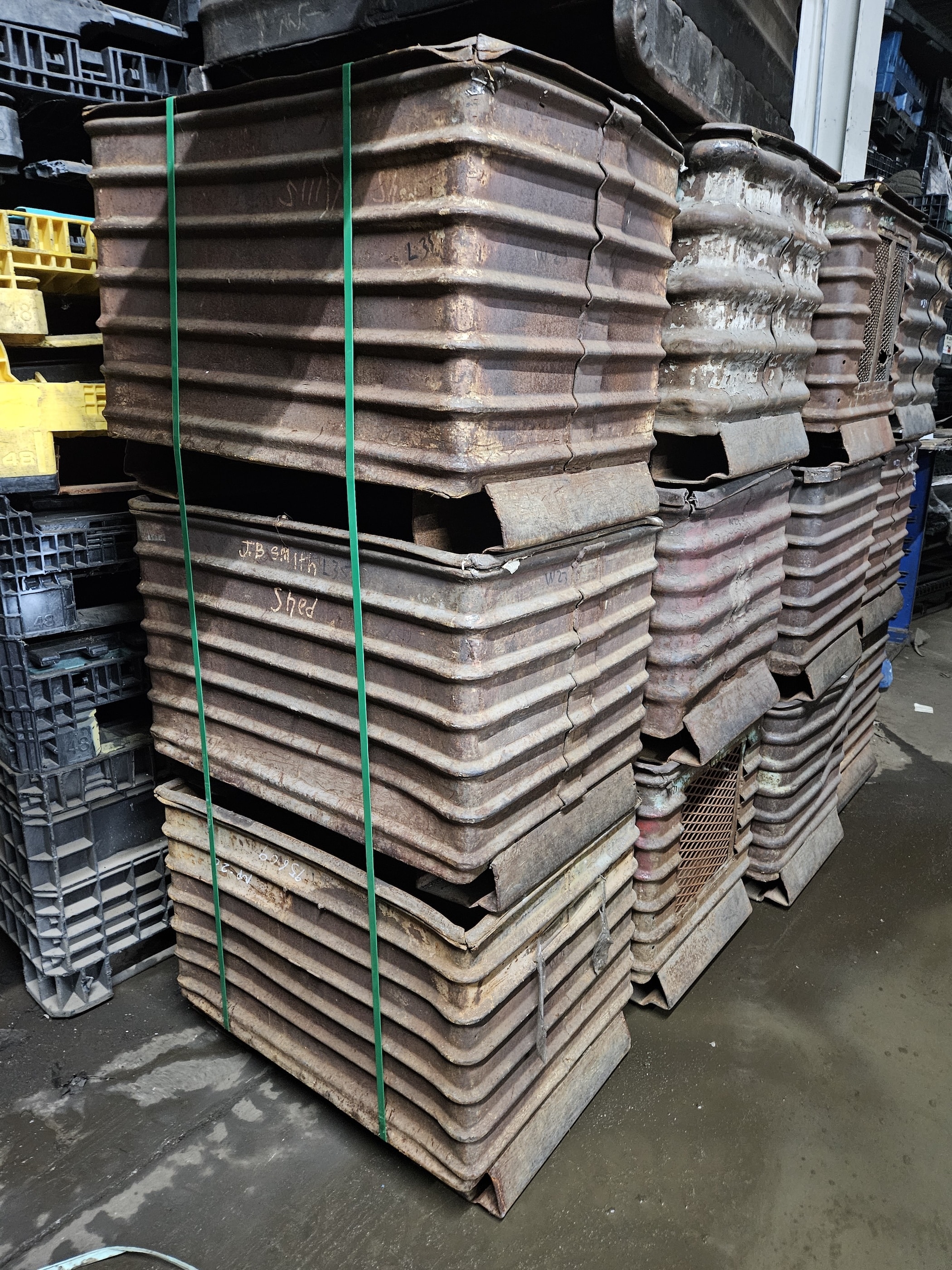 Item #2533: Steel Corrugated Bins 25″ x 33″ x 25″ OA ht, (20″ inside ht), Roll over Channels, 2 way entry.
