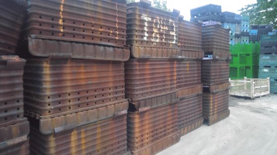 Item #656: Steel Doubled Lined Corrugated Heavy Duty Bins 42″ x 50″ x 32″ o/h (24″ ID), Tare wt = 800# to 843#.