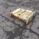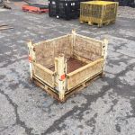 Item #852: Steel Collapsible Perforated Bins OD: 41.75″ x 31.5″ x 29.75″ o/h, ID: 35″ x 28″ x 20.75″ ID, 2 gates