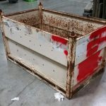 Item #862: Steel Vented Bins, 4 Gates, OD: 60″ x 36″ x 36.5″ o/h, ID: 56.5″ x 32.5″ x 27.25″ ID