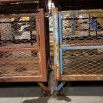 Item #929: Steel Mesh Baskets with bracket stacking feet 34.5″ x 40.5″ x 32″ o/h, 2 gates.